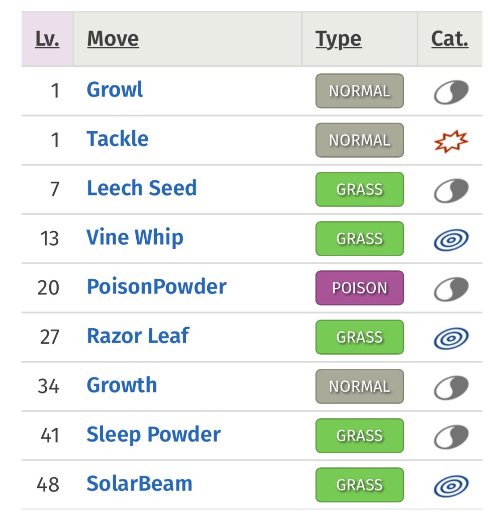 Bulbasaur’s Statistics: